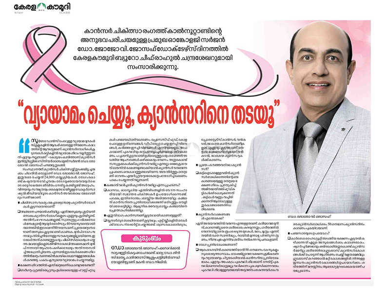 Dr. Jojo V Joseph is one of the best surgical oncologist in Kerala and South India who has been working as a senior surgical oncologist - Onco surgeon at Caritas Cancer Institute Kottayam and Mission Cancer Care, Indira Gandhi co-operative hospital Kochi.